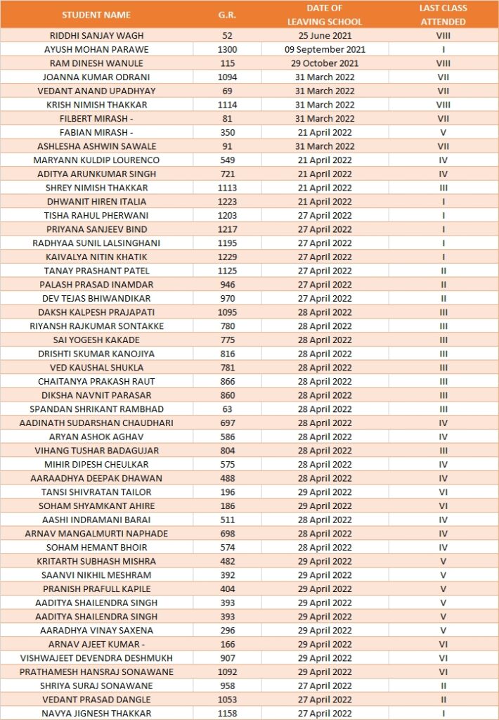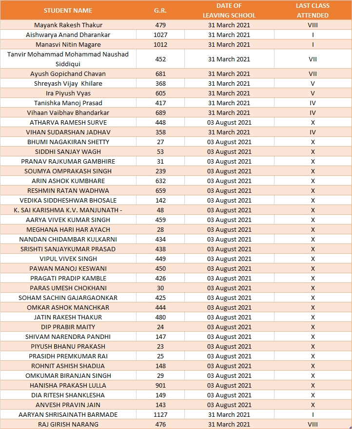 Click on the respective button below to get the list of leaving certificates issued during that particular year.
